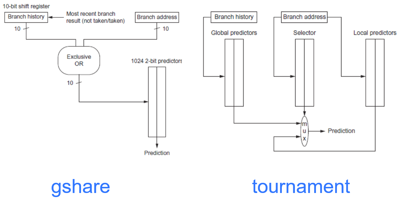 - (m, n) predictor: behavior from last m branches to choose from 2m n-bit predictors