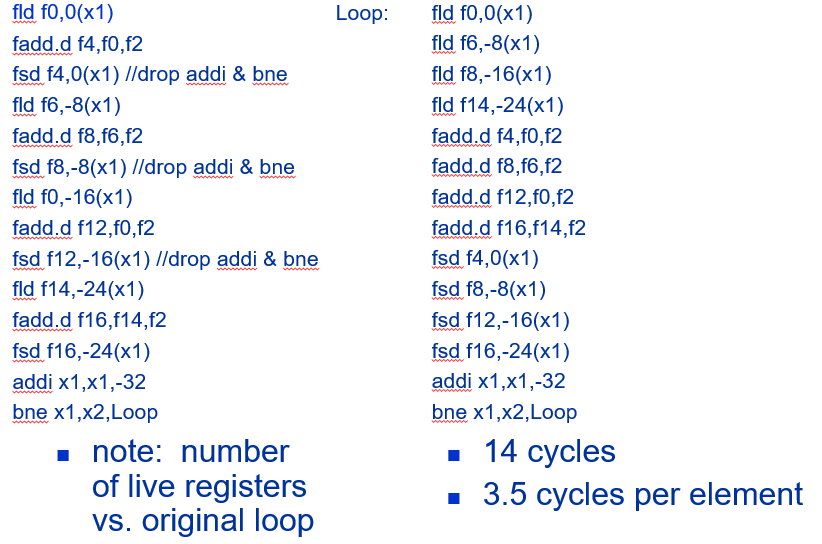 - Unroll by a factor of 4 (assume # elements is divisible by 4)