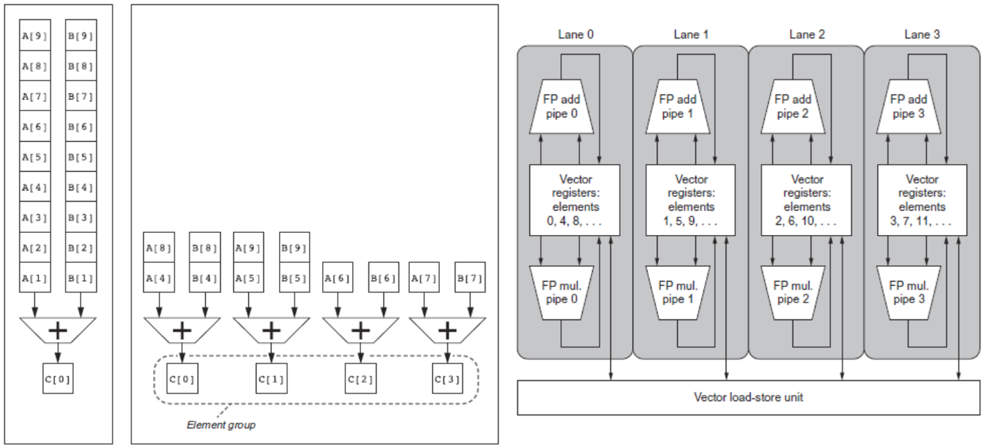 - RV64 has 2 to 8 lanes with vector length of 32, chime is 4 to 16 cycles