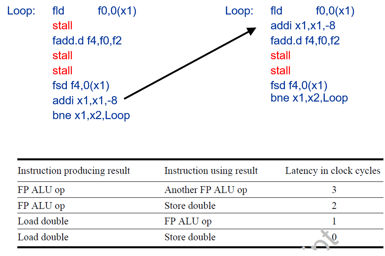 - Separate dependent instruction from the source instruction by the pipeline latency of the source instruction
