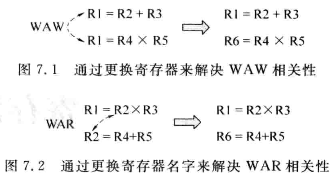 通过更换寄存器可以解决 WAW/WAR 相关性,这两种不算真相关性,出现的原因可能有以下原因: