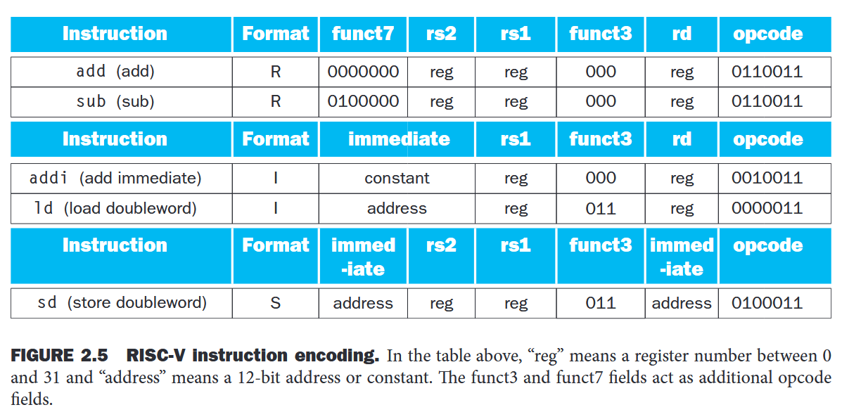 12 bits immediate is interpreted as a two’s complement value, so it can represent integers from 。When used for load double word instr., it can refer to any doubleword within a region of ±211 or 2048 bytes (±28 or 256 doublewords) of the base address in the base register rd.