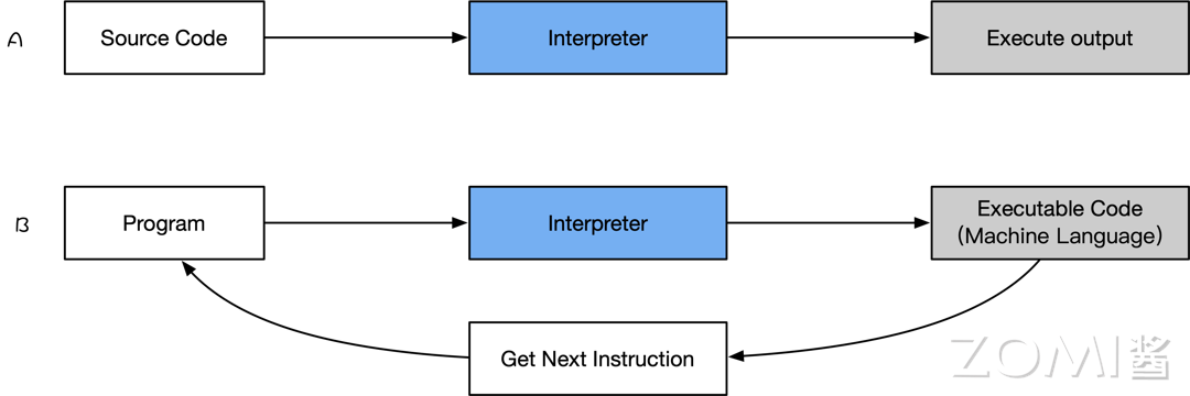 解释器能够直接执行程序或脚本语言中编写的指令,而不需要预先将这些程序或脚本语言转换成目标代码或者机器码。典型的解释型语言有 Python、PHP 和 Matlab。