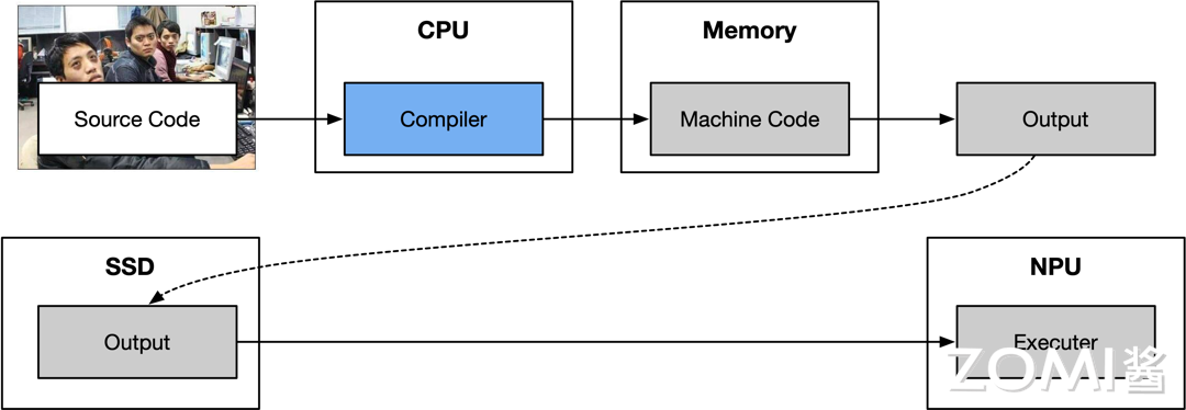 - 静态图生成,通过 AI 编译器对神经网络模型表示称为统一的 IR 描述,接着在真正运行时执行编译后的内容。
