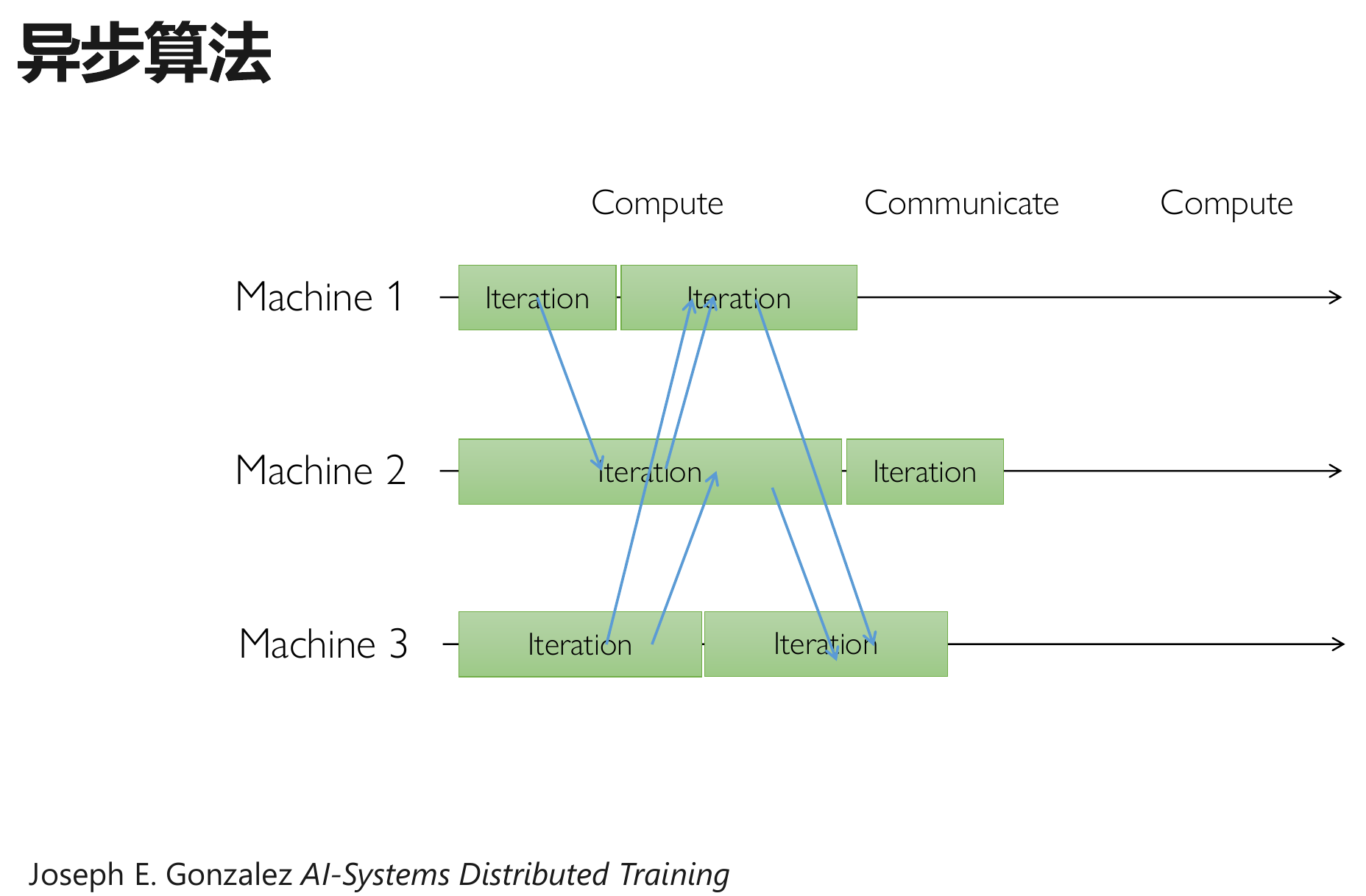 异步并行:采用不含同步屏障的通信协调并行