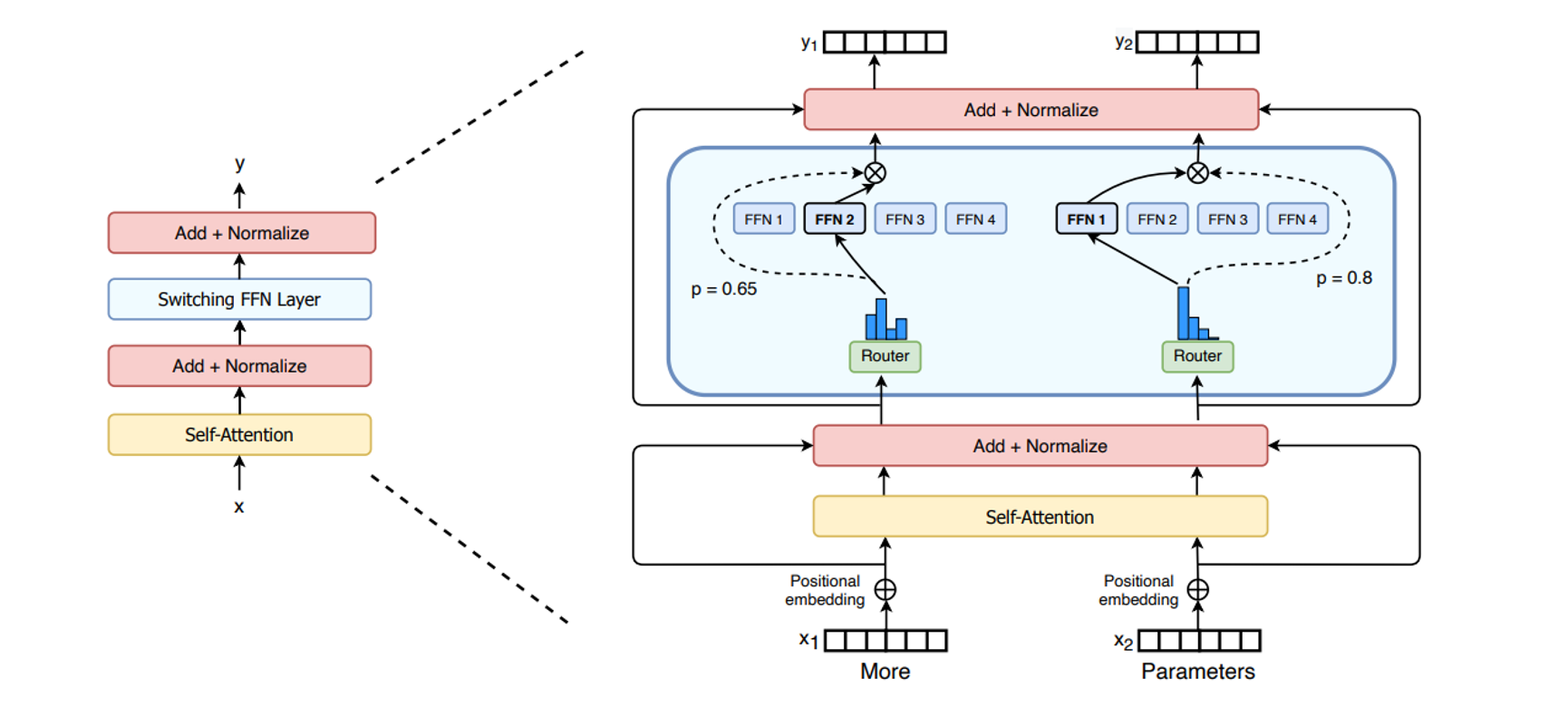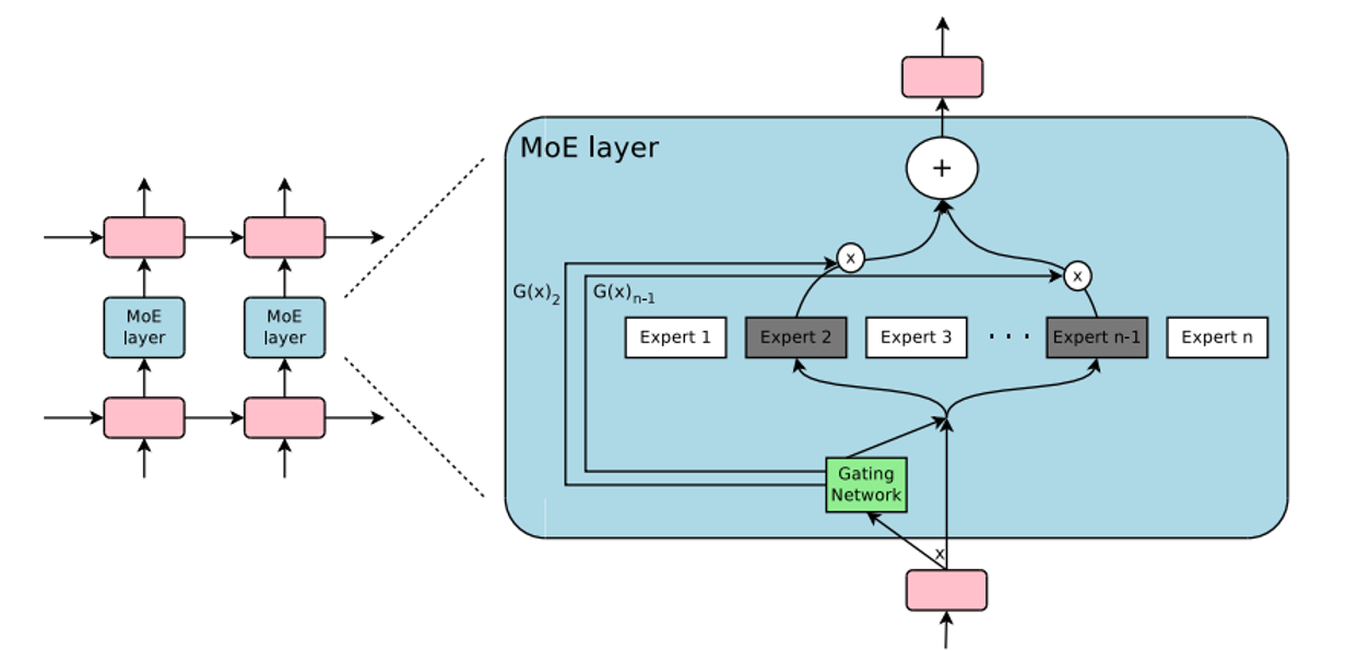 - 组件专家: 在传统的 MoE 设置中,整个系统由一个门控网络和多个专家组成。在支持向量机 (SVMs)、高斯过程和其他方法的研究中,MoE 通常被视为整个模型的一部分。然而,Eigen、Ranzato 和 Ilya 的研究 探索了将 MoE 作为更深层网络的一个组件。这种方法允许将 MoE 嵌入到多层网络中的某一层,使得模型既大又高效。