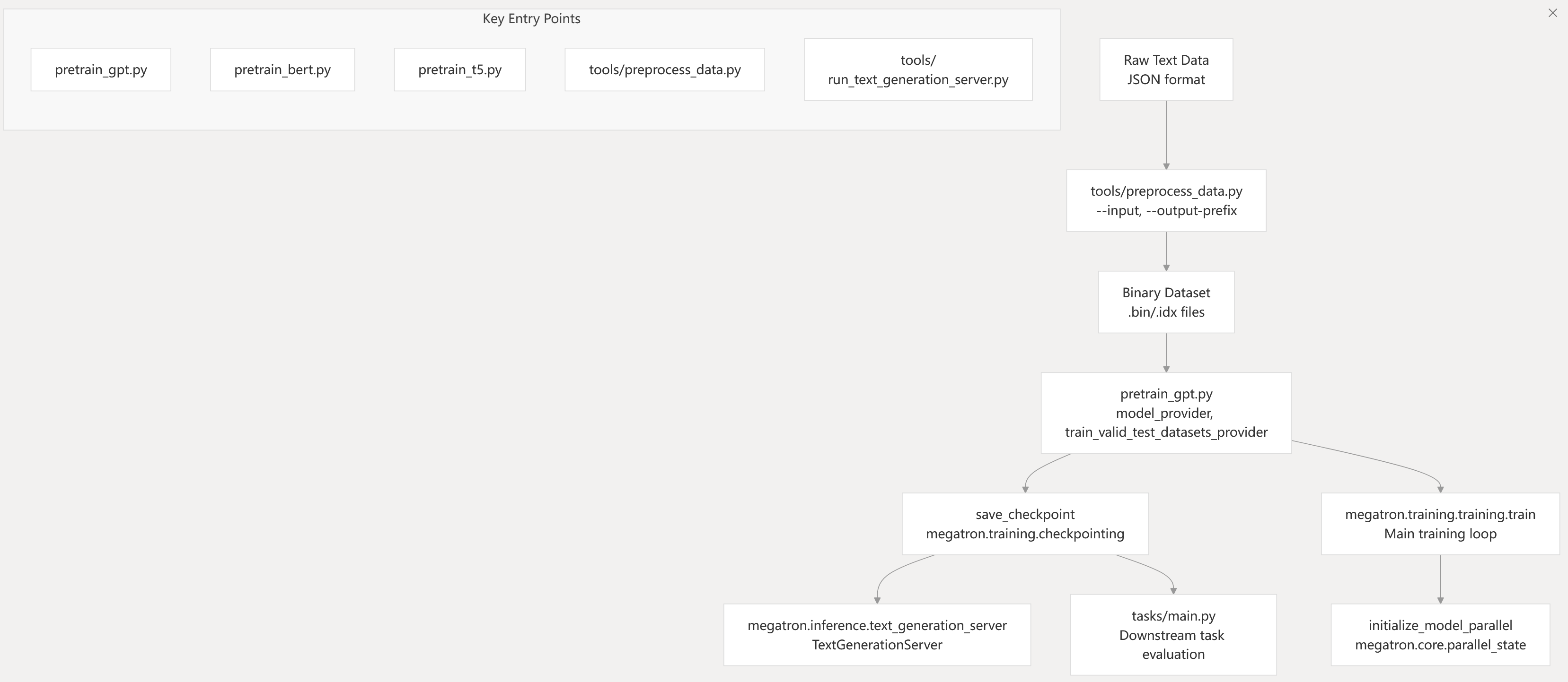 Sources: README.md199-212 README.md492-509 pretrain_gpt.py1-10 checkpointing.py1-4