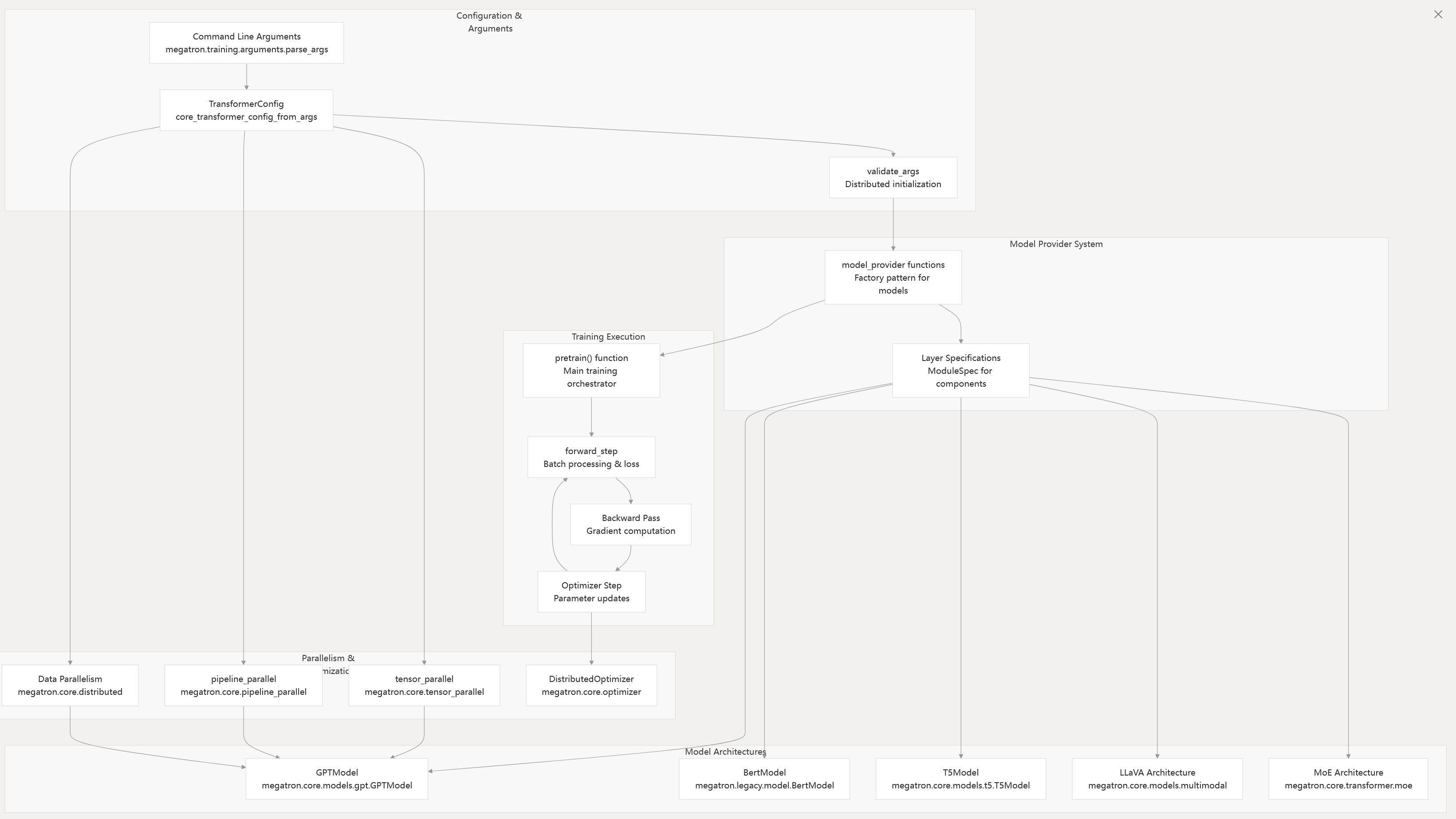 Megatron supports multiple transformer-based architectures through the TransformerConfig system: