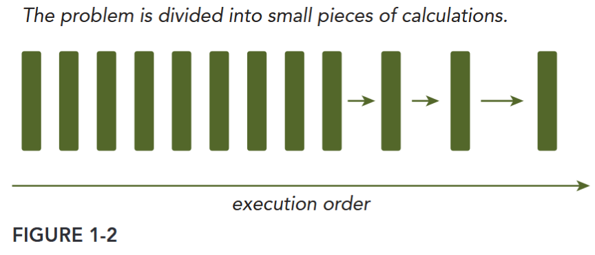 When solving a problem with a computer program, it is natural to divide the problem into a discrete series of calculations; each calculation performs a specified task, as shown in Figure 1-2. Such a program is called a sequential program.