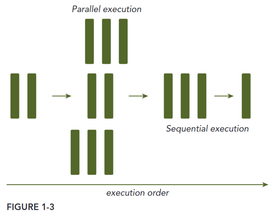There are two ways to classify the relationship between two pieces of computation: Some are related by a precedence restraint and therefore must be calculated sequentially; others have no such restraints and can be calculated concurrently. Any program containing tasks that are performed concurrently is a parallel program. As shown in Figure 1-3, a parallel program may, and most likely will, have some sequential parts.