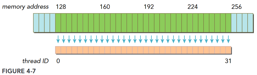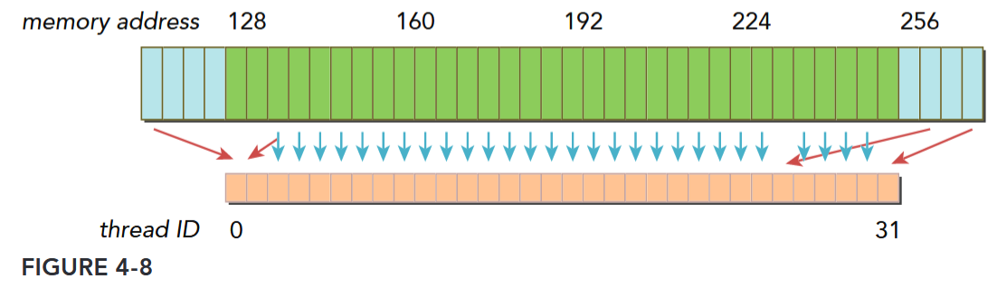 - Distribution of memory addresses across the threads of that warp.