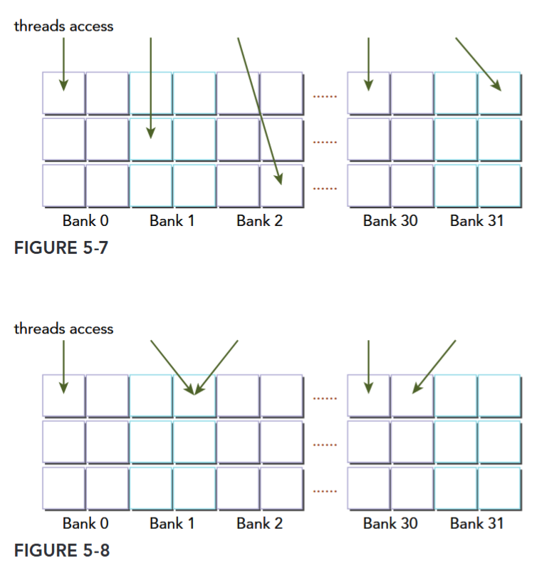 In general, the more transactions necessary to satisfy a memory request, the higher the potential for unused bytes to be transferred, causing a reduction in throughput efficiency. For a given warp memory request, the number of transactions and the throughput efficiency are determined by the compute capability of the device.