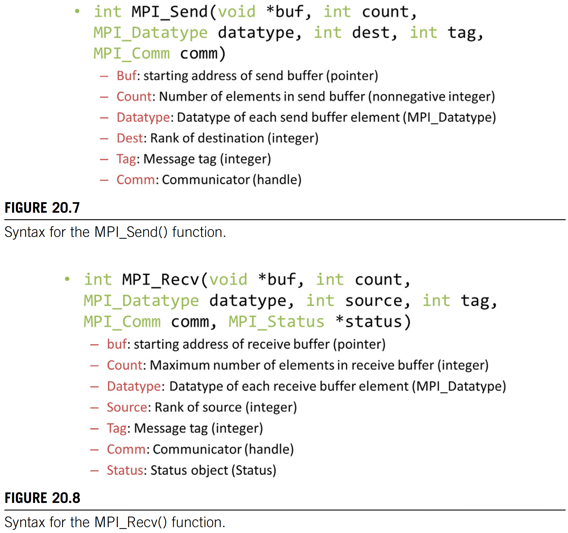 Fig. 20.7 shows the syntax for using the MPI_Send () function.