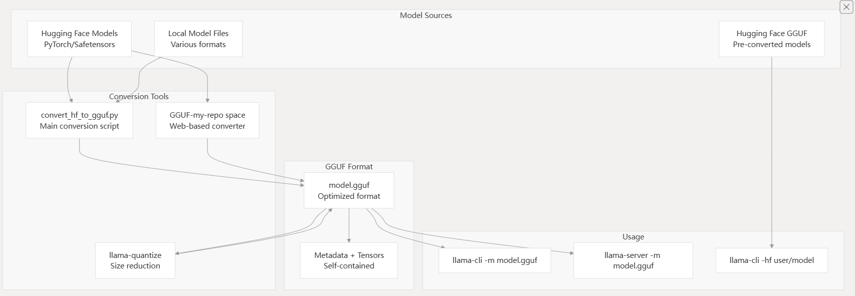 - GGUF file format for optimized model storage and loading
