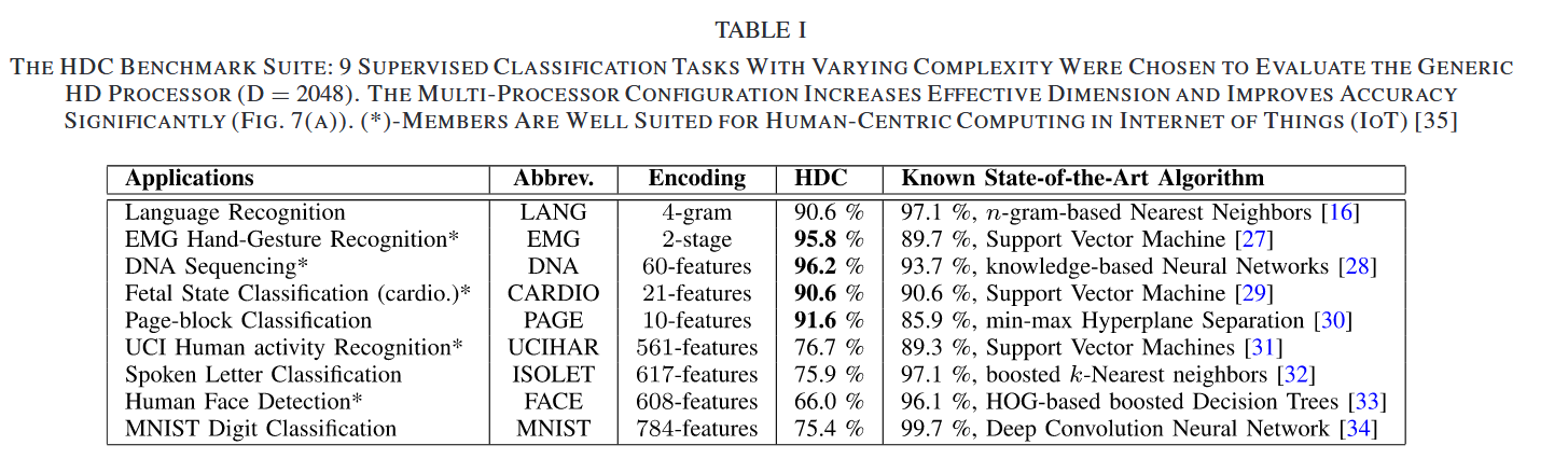 • HDC 模型在功耗效率和计算复杂性方面相较于传统神经网络具有优势,适合资源受限的 IoT 设备和边缘计算。